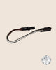 Unsere Zäume sind mit einer einzigartigen Funktion für die Stirnbänder ausgestattet. Fädeln Sie das Stirnband einfach durch eine Schlaufe am Zaumzeug, um sicherzustellen, dass es sicher an Ort und Stelle bleibt und nicht herunterrutscht. Auf der linken Seite des Stirnbandes befindet sich ein dezenter schwarzer Pin mit unserem Logo.