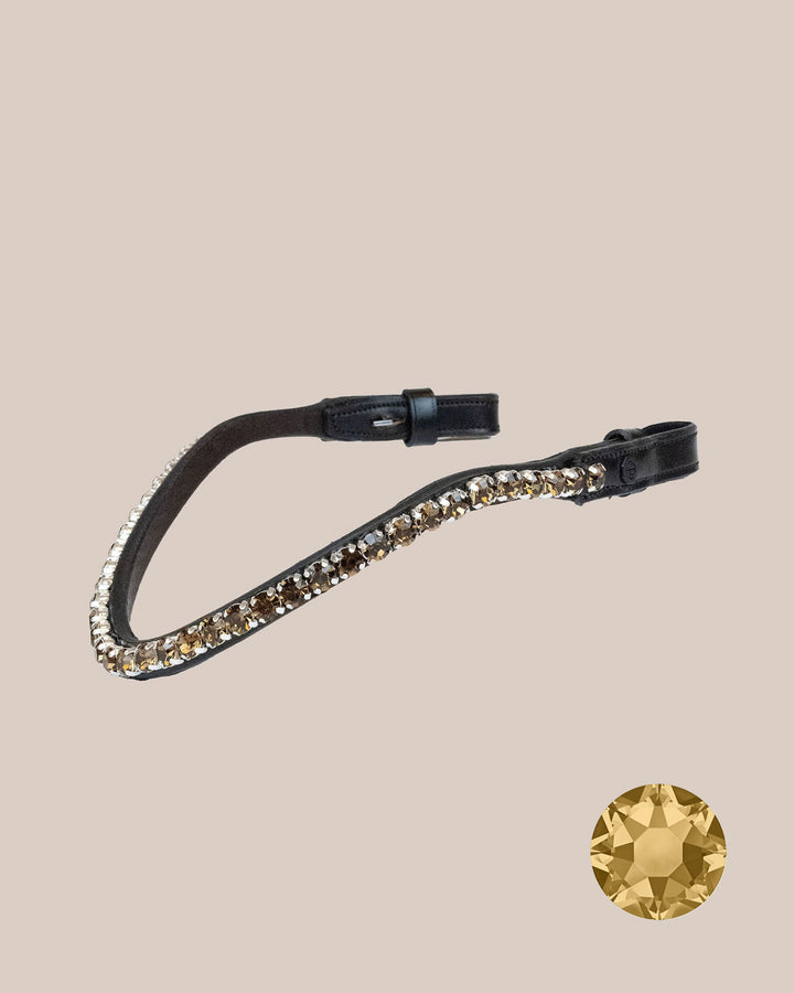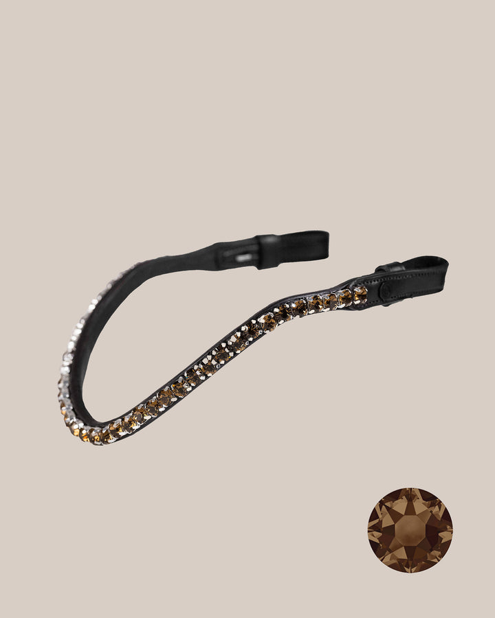 Unser Design der Stirnriemen verläuft leicht über dem Augenbein und dann tief über die Stirn. Die U-Form wurde bewusst schmaler gestaltet, sodass sie nur in der Mitte der Stirn tief heruntergeht und nicht über den gesamten Kopf des Pferdes. Stirnriemen mit einer breiteren U-Form liegen auf dem Augenbein auf und stören das Pferd.