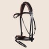Eine elegante Dressurtrense mit flachen Riemen. Der Nasenriemen hat eine dünne lackierte Kante und ein gerades Design mit unserer einzigartigen OCTA-Funktion, die Wangenfreiheit und eine geschwungene Form bietet. Dieser Nasenriemen hat einen normalen Verschluss, keinen Pullback.